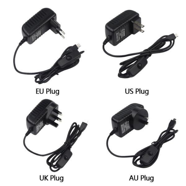 Supply 5V 3A EU US UK AU Plug Switch Button Micro USB Power Charger Adapter